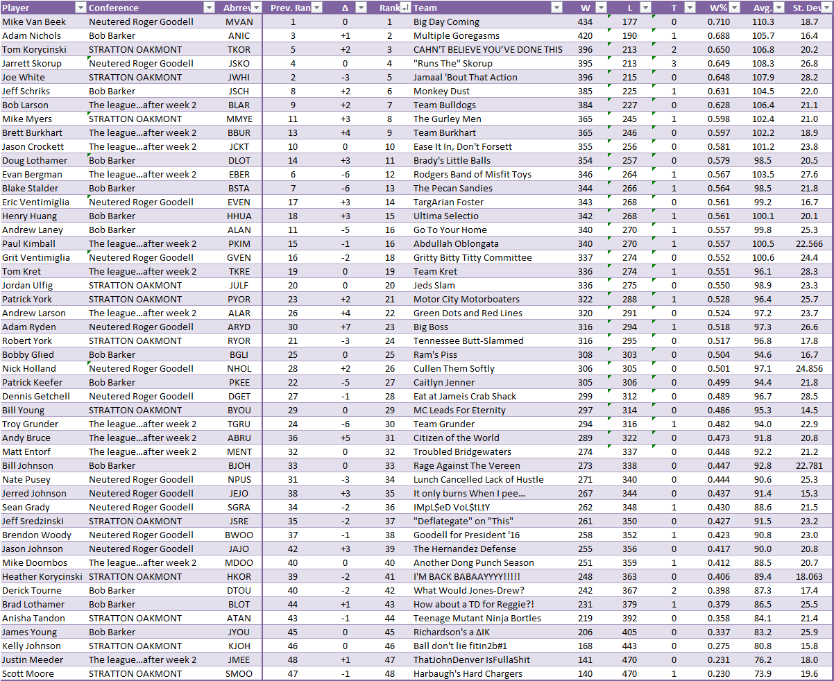 2015 BAFFFL POWER RANKINGS